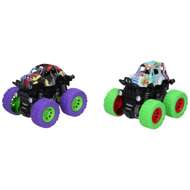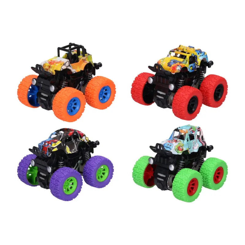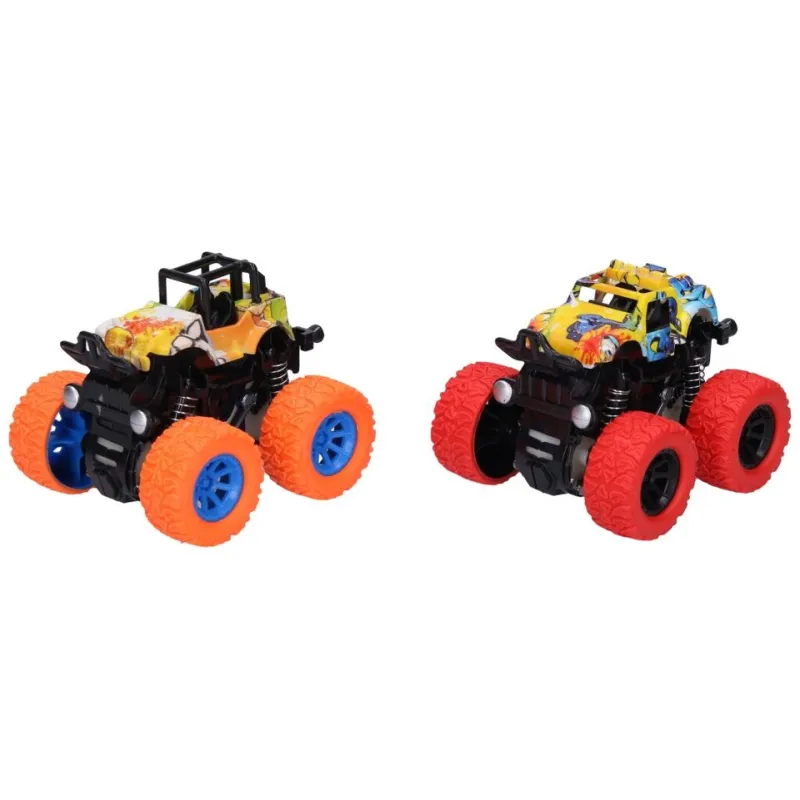 Auto má gumené pneumatiky, pohon všetkých 4 kolies, odpruženie, rotácia 360°.