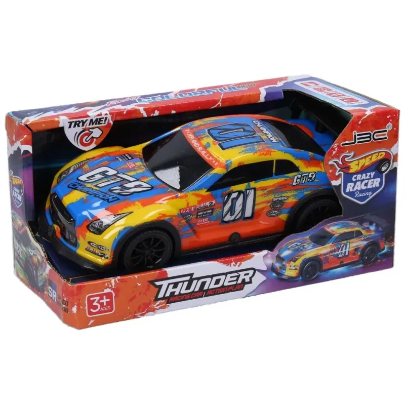 Auto závodné s efektmi.Rozmery 19,5x8,5x5,5 cm.Na zotrvačník.Svetelné a zvukové efekty stlačením prednej kapoty.4x