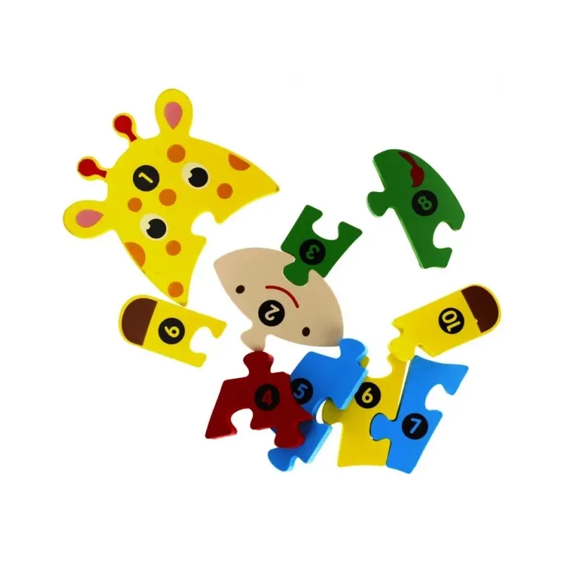 Drevené puzzle Žirafa sa skladjú z 10 dielikov.