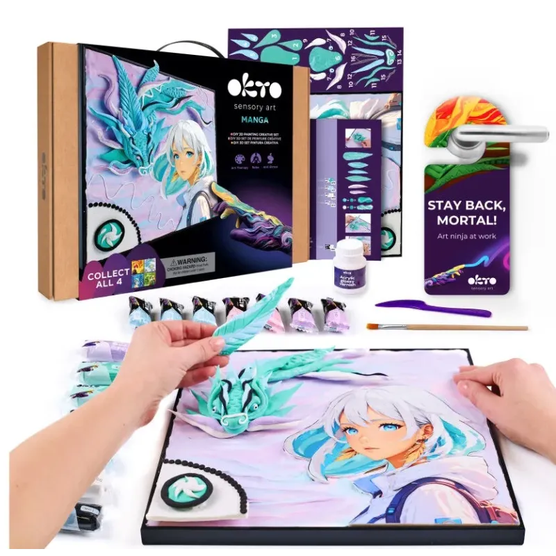 Obsah balenia: rám, plátno, obrázkový návod, modelovací nástroj, sada samoschnúcej modelovacej hmoty, akrylový lak 20 ml, štětec.Vhodné od 10+