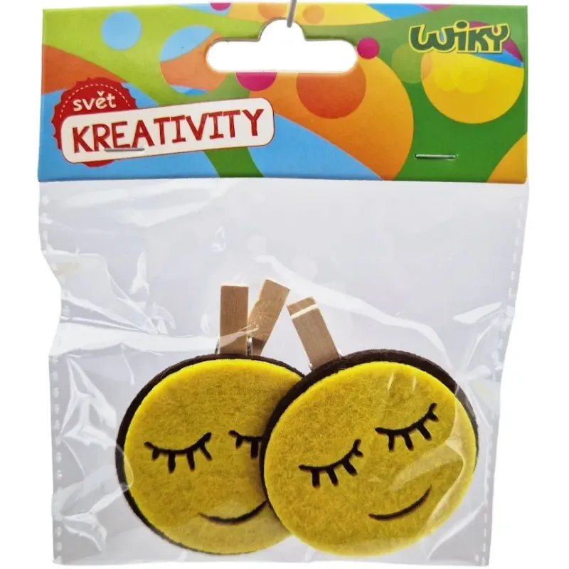 Drevené malé štipce s motívom smajlíka.