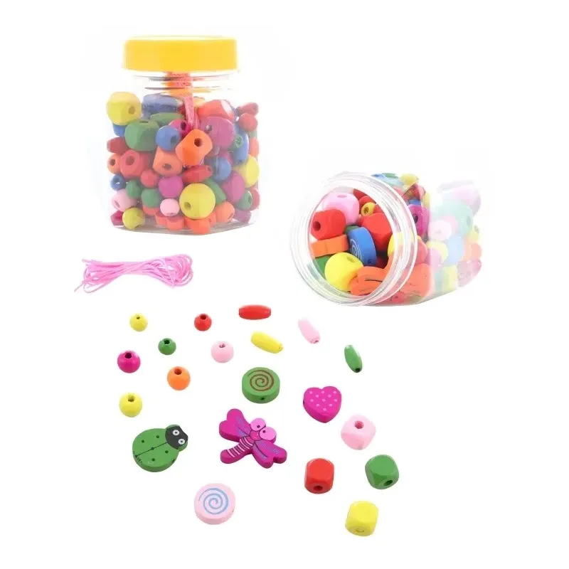 Balenie: drevené a farebné korálky, šnúrka na navliekanie