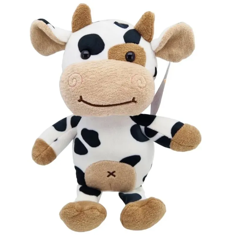 Krava plyšová, vyrobená z kvalitného jemného a mäkkého plyšového materiálu.
