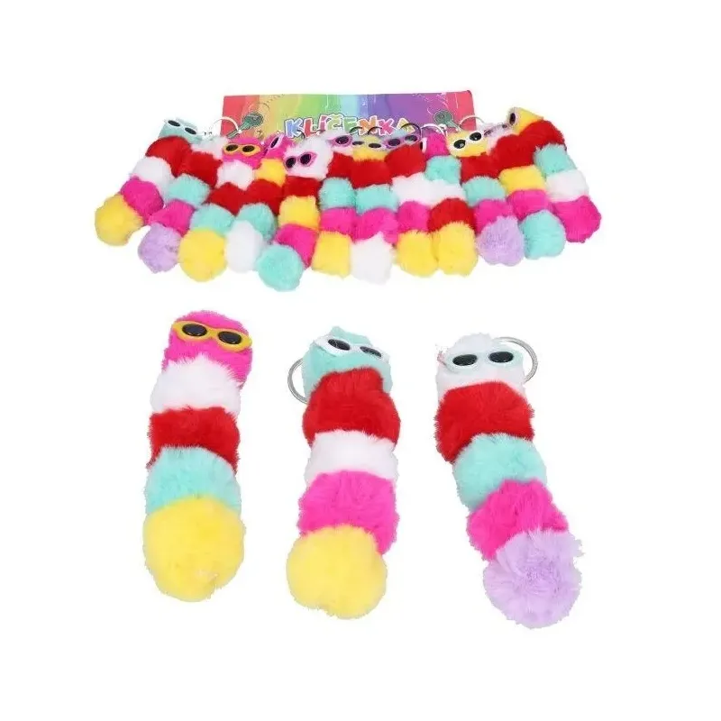 Chlpaté guľôčky v tvare húsenice, plastové okuliare.