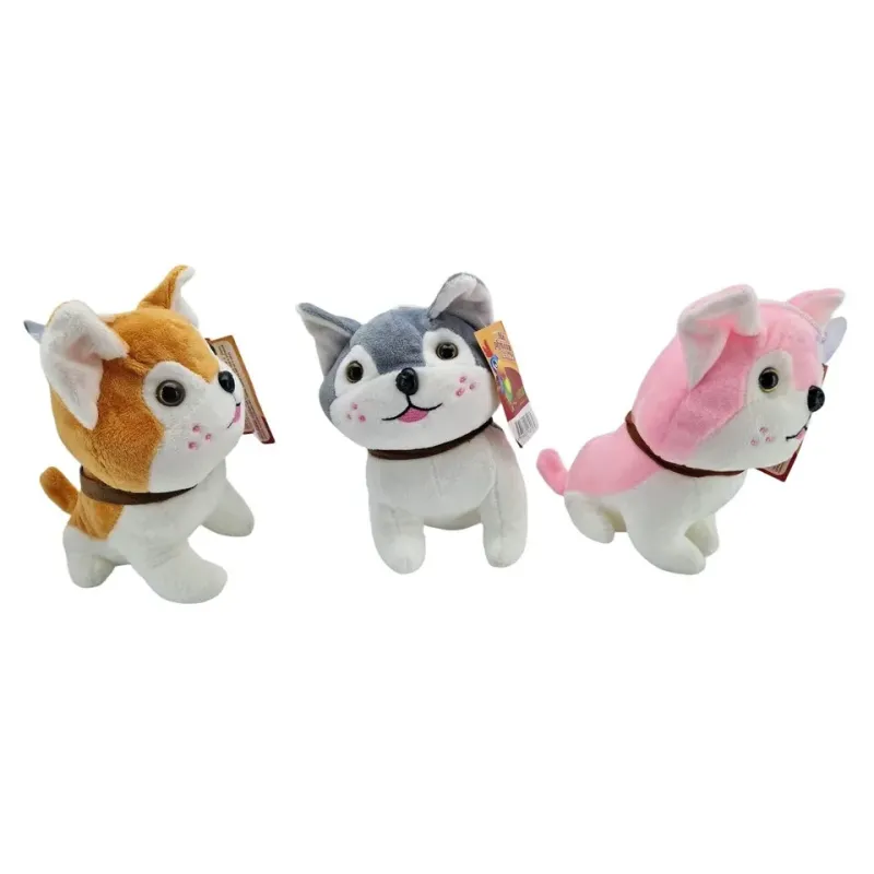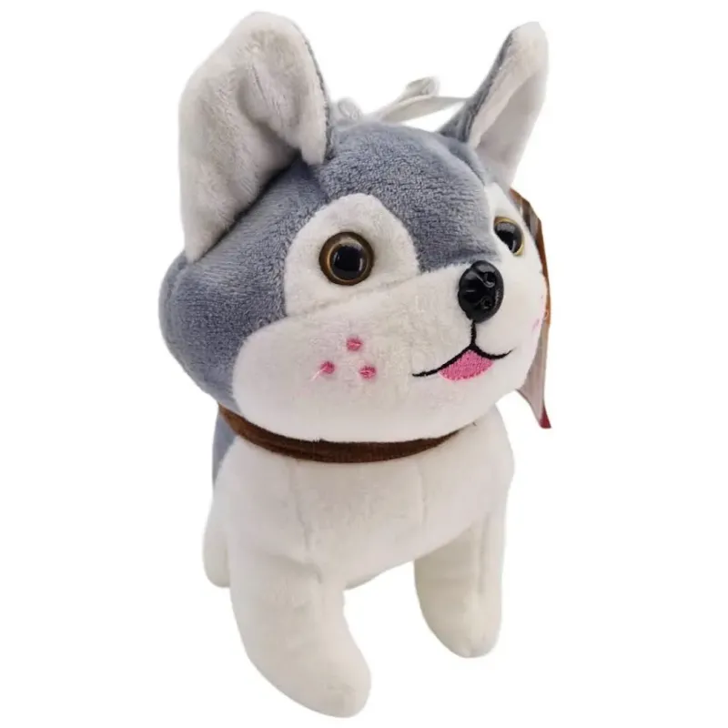 Pes plyšový, vyrobený z kvalitného jemného a mäkkého plyšového materiálu.