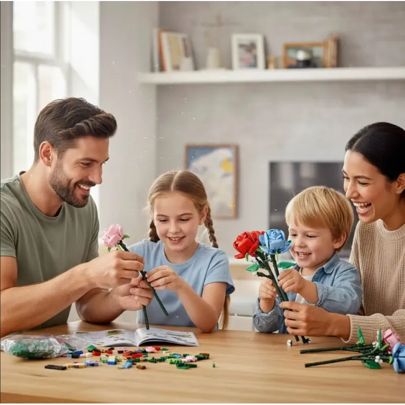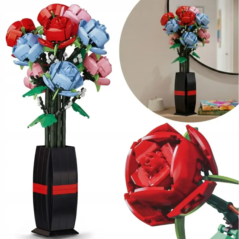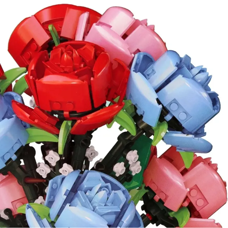 Sada obsahuje rôzne tvary a farby, čo umožňuje mladým staviteľom vytvárať klasické kytice aj vlastné originálne kvetinové aranžmány.