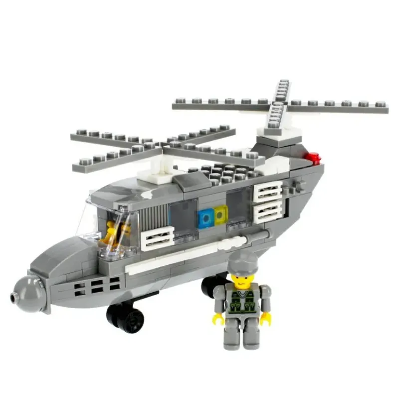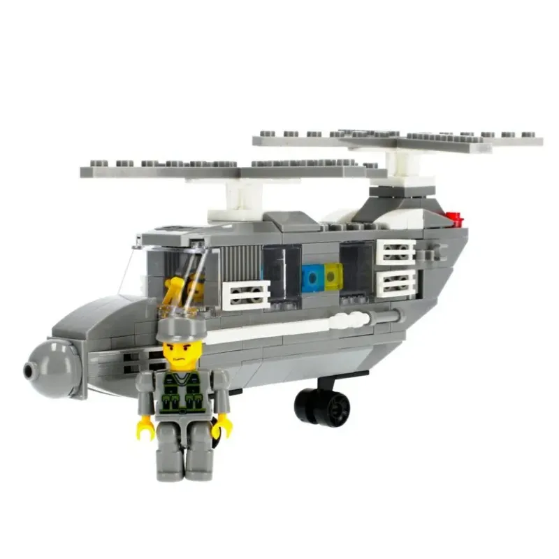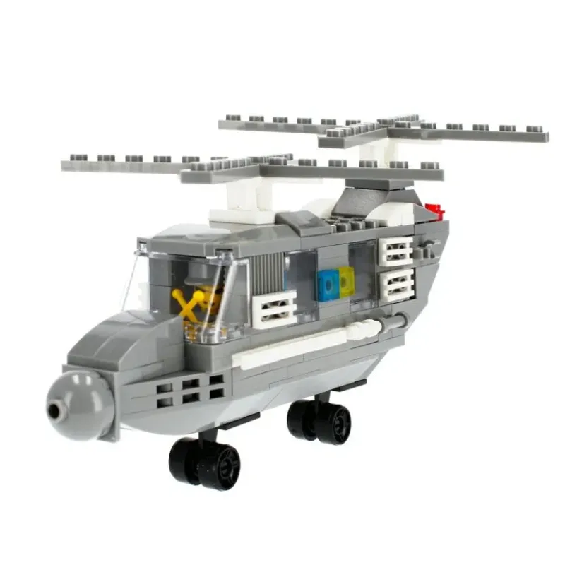Výhody produktu: bloky zvyšujú mentálnu výkonnosť, čo sa premieta do kreativity, stimulujú predstavivosť a majú pozitívny vplyv na rozvoj dieťaťa, vrtuľník má pohyblivé vrtule.