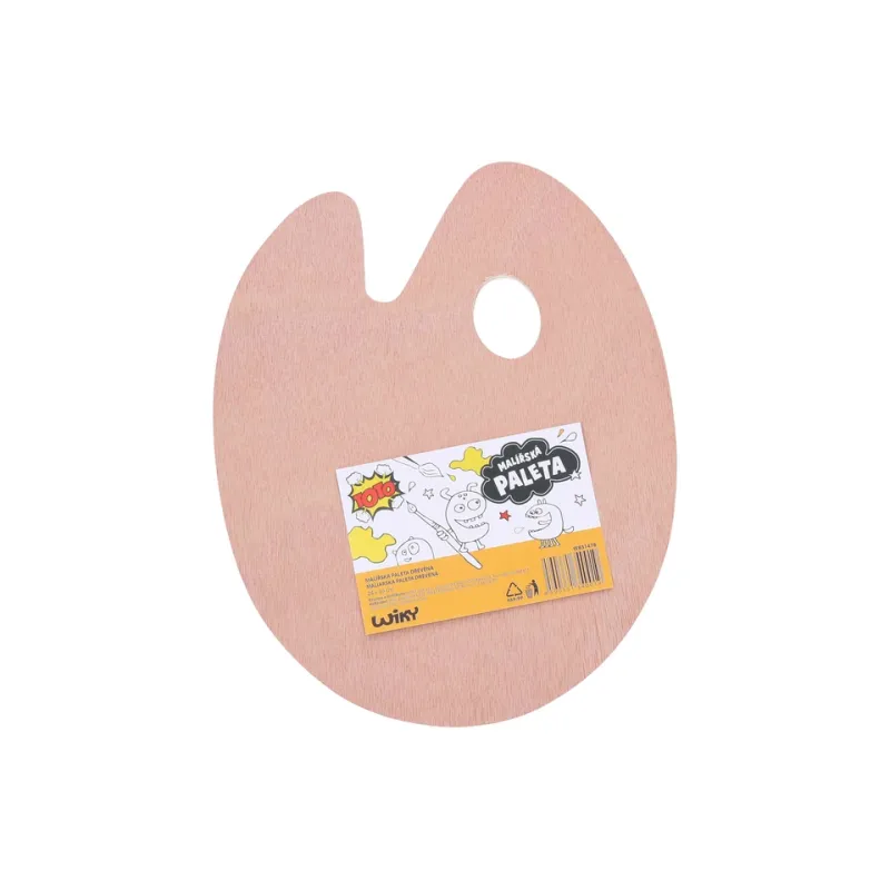 Drevená maliarska paleta,oválného tvaru s výrezom pre pohodlnejšie uchopenie pri maľovaní.