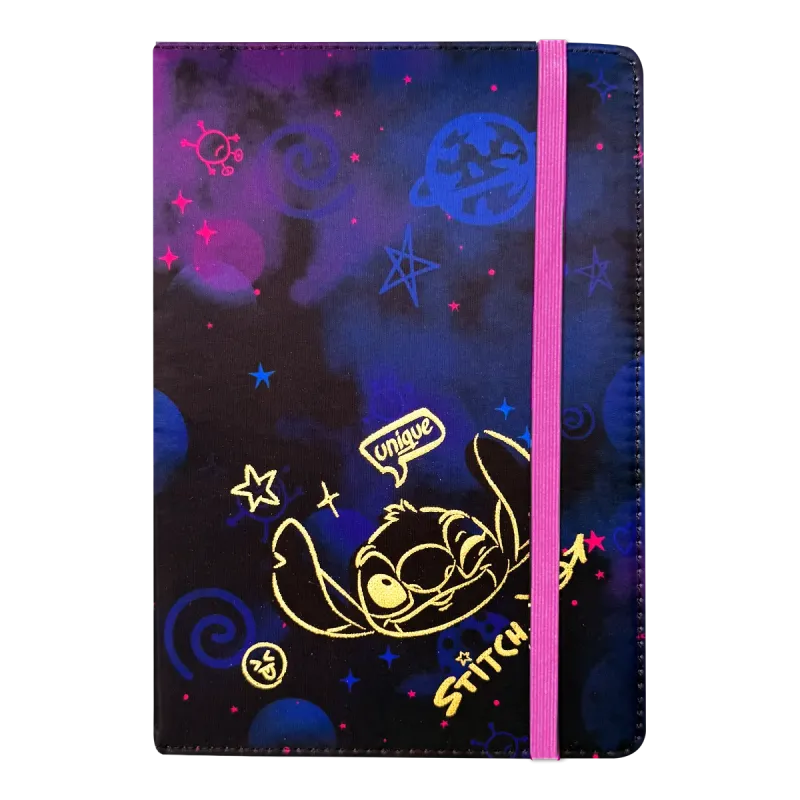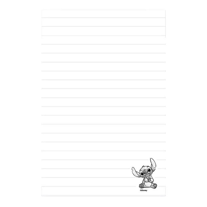 Vystužený zápisník v pevných kartónových doskách s textilnoupovrchovou úpravou. Spracovanie, ktoré je odolné proti vonkajšiemupoškodeniu. Plochá fixačná gumička, ktorá bráni nechcenému otvoreniuzápisníka. Vhodný na každodenné poznámky, denné úlohy alebo ako denník.Linajkový bielený papier s drobnou dekoráciou Stitcha v pravomspodnom rohu.