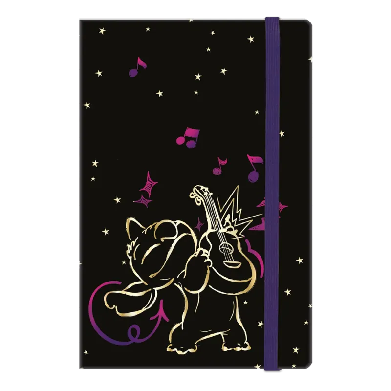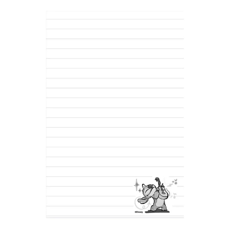 Vystužený zápisník v pevných kartónových doskách s textilnoupovrchovou úpravou. Spracovanie, ktoré je odolné proti vonkajšiemupoškodeniu. Plochá fixačná gumička, ktorá bráni nechcenému otvoreniuzápisníka. Vhodný na každodenné poznámky, denné úlohy alebo ako denník.Linajkový bielený papier s drobnou dekoráciou Stitcha v pravomspodnom rohu.