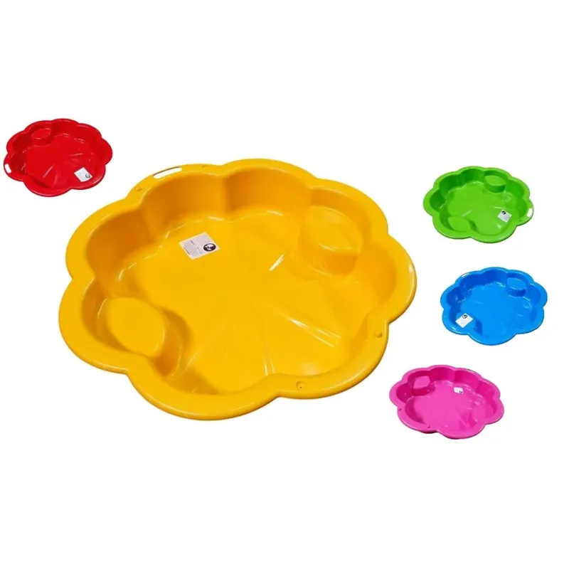 Krásne plastové pieskovisko v tvare kvietočka so sedadlami môžete používať ako pieskovisko alebo bazénik.