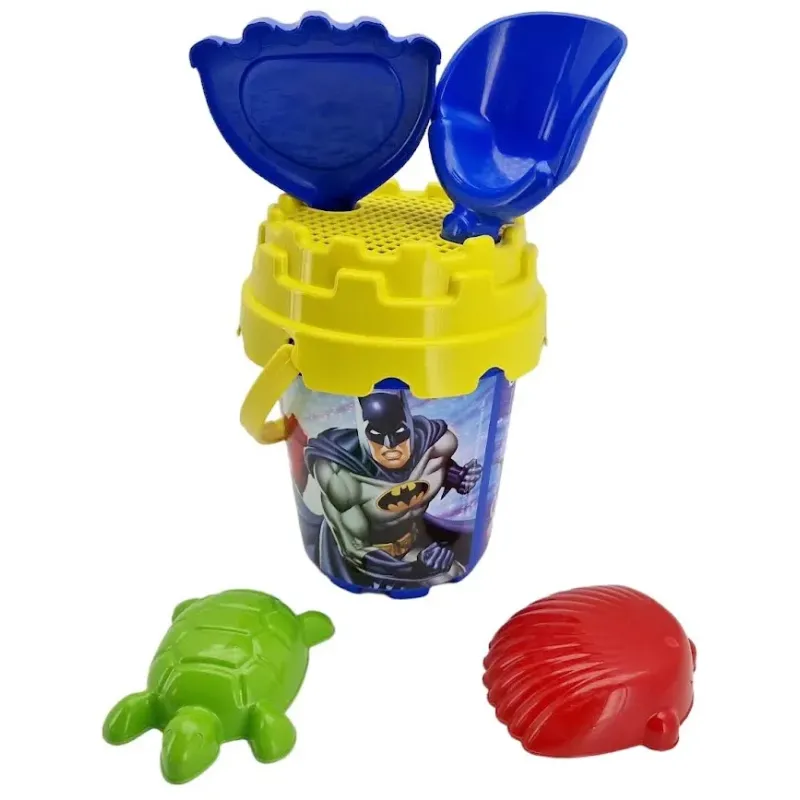 Táto sada do piesku obsahuje vedierko, sitko, hrable, lopatku a formičky.