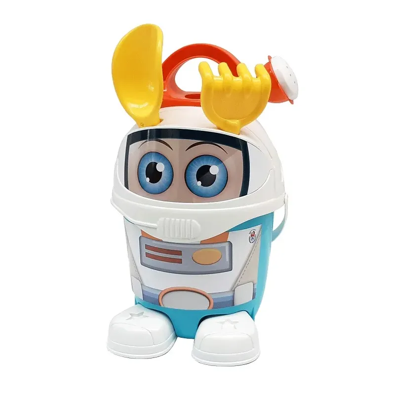 Táto sada do piesku obsahuje vedierko, hrable, konvičku a lopatku.