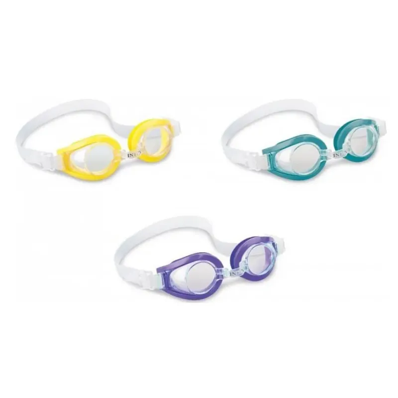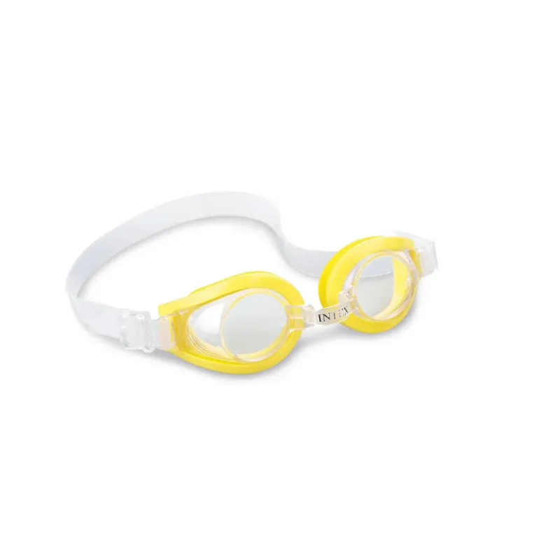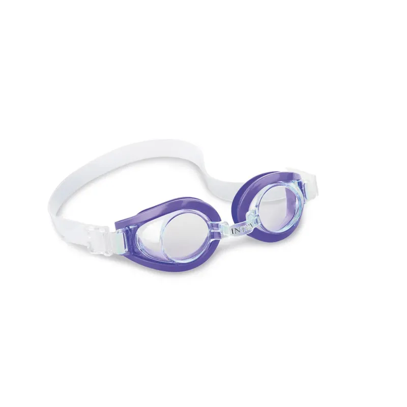 Moderné plavecké okuliare Intex s priehľadnými bezpečnostnými šošovkami.