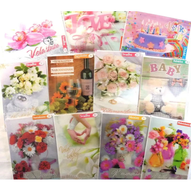 Blahoželanie s textom vo vnútri. 3D efekt umocňuje dojem priestoru. Súčasťou priania je aj farebne zladená obálka.
