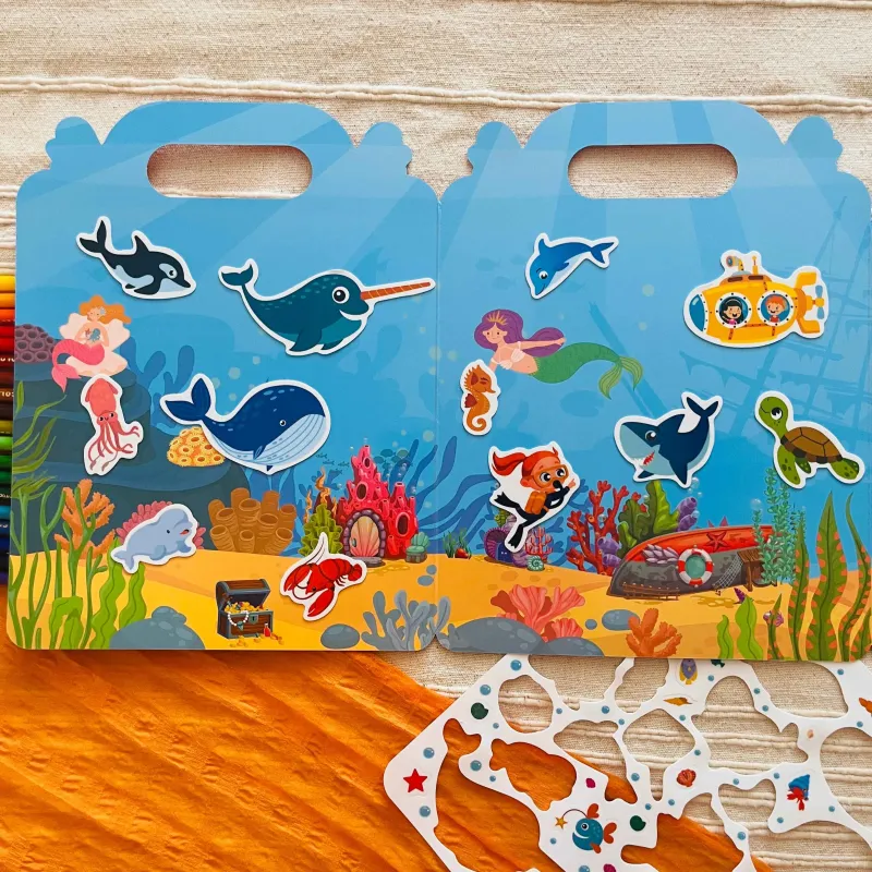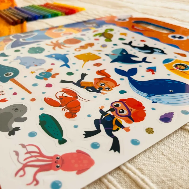 Objavujte tajomný život podmorských zvieratiek vďaka znovupoužiteľnýmgumolepkám!