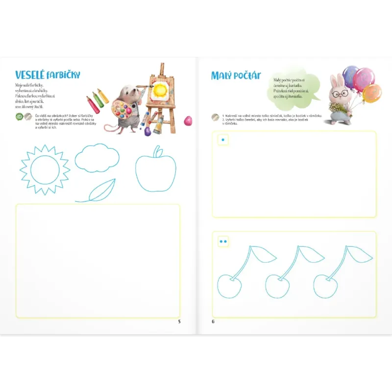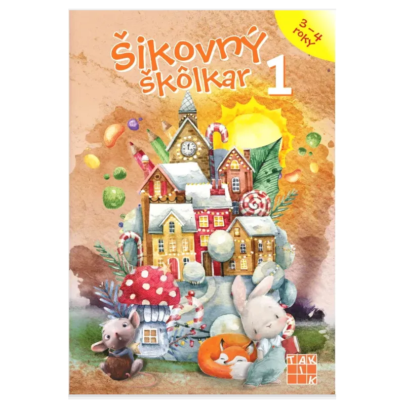 Pracovný zošit Šikovný škôlkar 1 je pestrým a farebným sprievodcomnajmenších pri spoznávaní sveta, ktorý ich obklopuje. Získajú a upevniasi základné poznatky z oblasti prírody (rastliny a živočíchy, ročnéobdobia), spoločnosti (ľudia v blízkom i širšom okolí, dopravnávýchova), umenia a kultúry (výtvarné činnosti, hudba a hudobné nástroje),jazyka a komunikácie (hovorená reč, grafomotorické predpoklady písania),matematiky (čísla a vzťahy, geometrické útvary, logika). Dozvedia sa, akejfarby sú svetlá na semafore, aké potraviny sú pre ich brušká prospešnéalebo čím sú výnimočné jednotlivé ročné obdobia. Pri vypracovaní úlohdoplnených nádhernými ilustráciami zvieratiek a veselými básničkami simladí škôlkari rozvíjajú svoju jemnú grafomotoriku, fantáziu a logickémyslenie.
