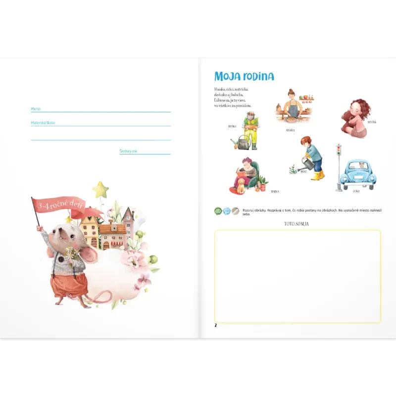 Pracovný zošit Šikovný škôlkar 3 je pestrým a farebným sprievodcomnajmenších pri spoznávaní sveta, ktorý ich obklopuje. Získajú a upevniasi základné poznatky z oblasti prírody (rastliny a živočíchy, ročnéobdobia), spoločnosti (ľudia v blízkom i širšom okolí, dopravnávýchova), umenia a kultúry (výtvarné činnosti, hudba a hudobné nástroje),jazyka a komunikácie (hovorená reč, grafomotorické predpoklady písania),matematiky (čísla a vzťahy, geometrické útvary, logika). Dozvedia sa viaco kolobehu vody v prírode, zistia, kto vyrába med a prečo je dôležitý,spoznajú bližšie geometrické tvary, štátne symboly, vytvoria si krásnuplanétu a naučia sa triediť odpad. Pri vypracovaní úloh doplnenýchnádhernými ilustráciami zvieratiek a veselými básničkami si mladíškôlkari rozvíjajú svoju jemnú grafomotoriku, fantáziu a logickémyslenie.