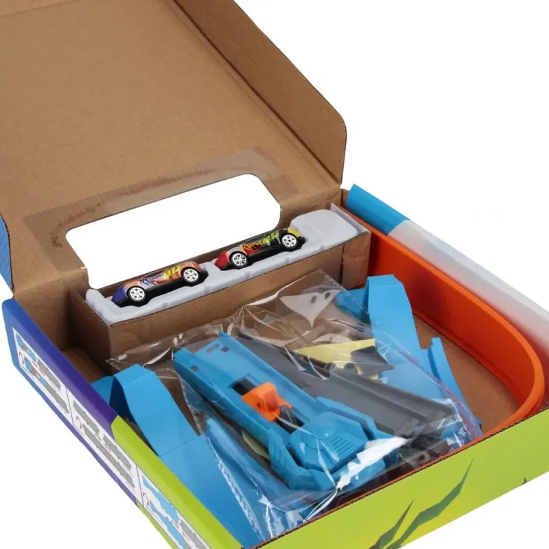 Sada obsahuje: 2x pretekárske autíčka a príslušenstvo na zostavenie trate