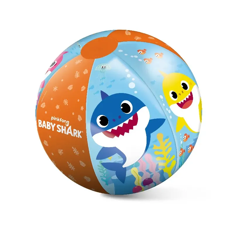 Detská nafukovacia lopta s motívom Baby Shark, je vyrobená z bezpečných a odolných materiálov.