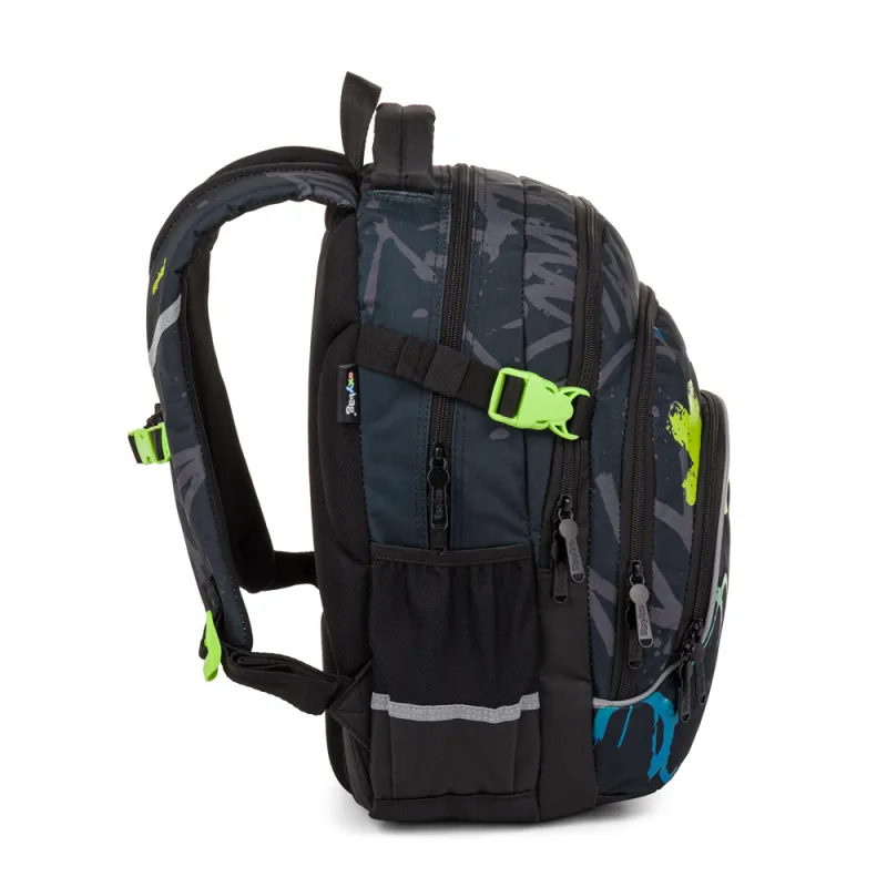 Batoh OXY Scooler je ideálnou voľbou pre školákov od 3. triedy, ktorí potrebujú dostatok priestoru na všetko dôležité. Trojkomorový batoh ponúka veľa miesta na učebnice, zošity aj desiatu, nechýba organizér na drobnosti, vnútorná vrecko a priehradka na notebook. Bočné vrecko je perfektné na fľašu s pitím, zatiaľ čo držiak na kľúče alebo čip ušetrí ich zdĺhavé hľadanie.