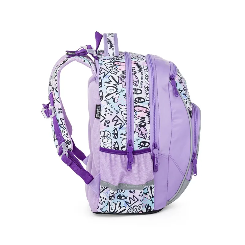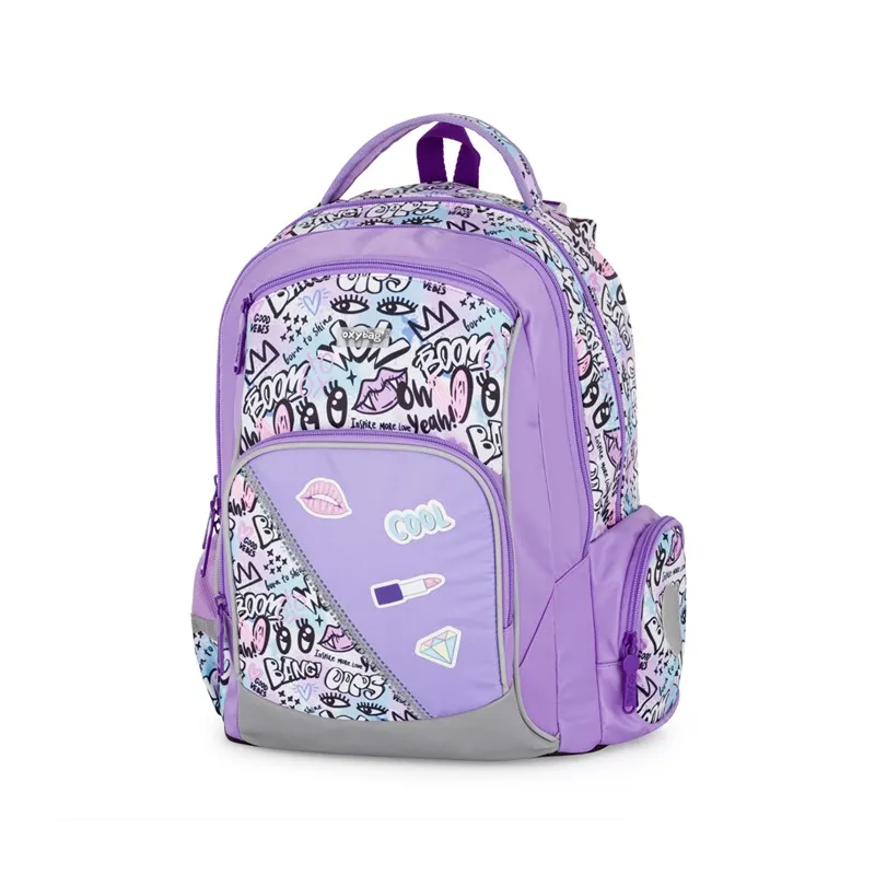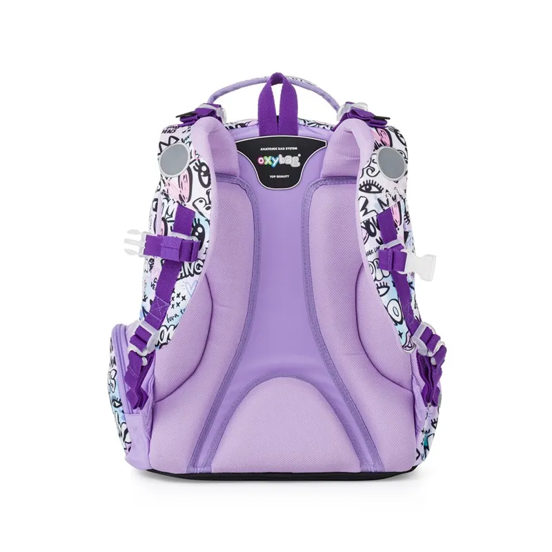 Školský batoh OXY GO zaujme moderným dizajnom a premyslenou funkčnosťou. Má anatomicky tvarované, priedušné chrbát a nastaviteľné ramenné popruhy pre pohodlné nosenie. Pridané háčiky umožňujú uchytenie dlhých popruhov. Vnútorné vrecká ponúkajú dostatok miesta na učebnice, zošity i ďalšie potreby, pevné nepremokavé dno chráni obsah pred zašpinením a pretečením. Bočné vrecká, jedno na zips a jedno otvorené, slúžia napríklad na fľašu. Reflexné prvky zabezpečujú bezpečnosť. Batoh je ideálny pre deti od 1. do 3. triedy vysoké od 125 cm.