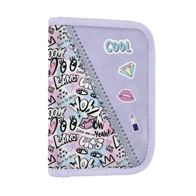 Jednoposchodový s dvomi chlopňami, pútka na písacie potreby a priehľadná fólia na rozvrh hodín.