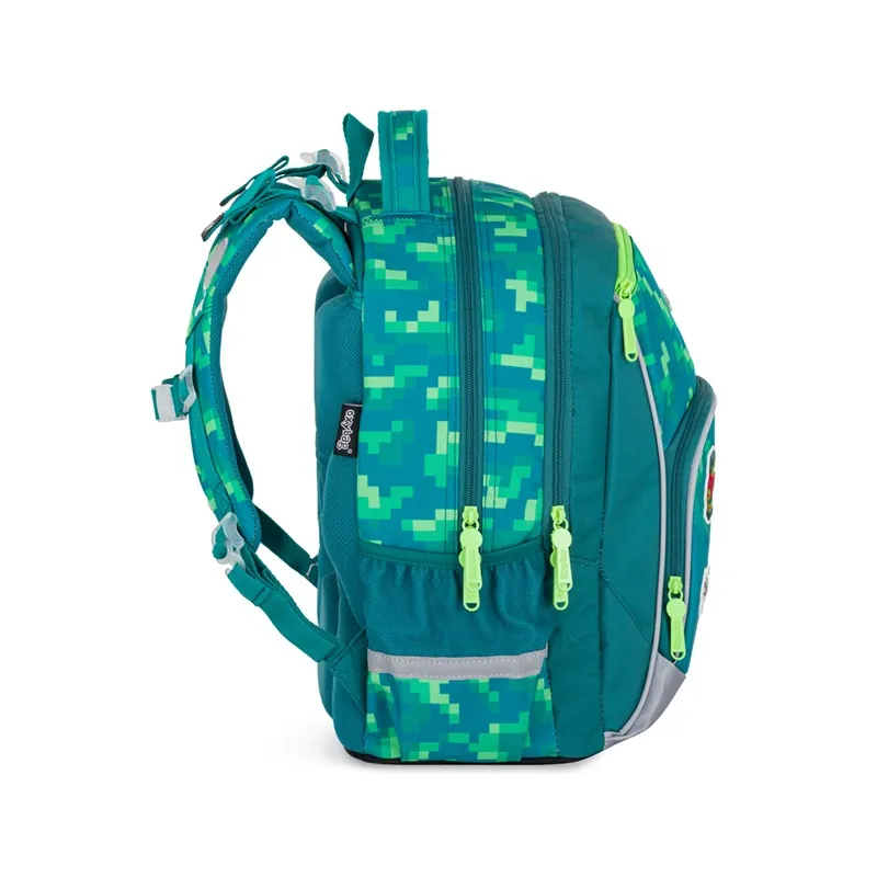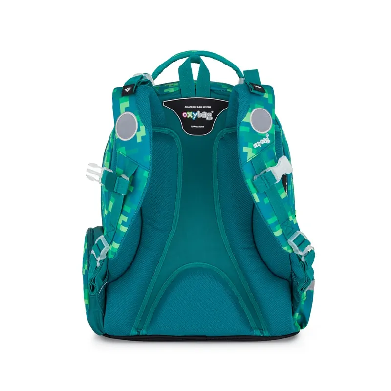 Školský batoh OXY GO zaujme moderným dizajnom a premyslenou funkčnosťou. Má anatomicky tvarované, priedušné chrbát a nastaviteľné ramenné popruhy pre pohodlné nosenie. Pridané háčiky umožňujú uchytenie dlhých popruhov. Vnútorné vrecká ponúkajú dostatok miesta na učebnice, zošity i ďalšie potreby, pevné nepremokavé dno chráni obsah pred zašpinením a pretečením. Bočné vrecká, jedno na zips a jedno otvorené, slúžia napríklad na fľašu. Reflexné prvky zabezpečujú bezpečnosť. Batoh je ideálny pre deti od 1. do 3. triedy vysoké od 125 cm.