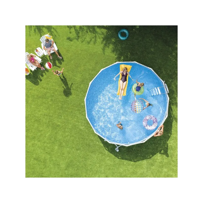 K tomuto bazénu je možné pripojiť aj pieskovú filtráciu.My odporúčame pieskovú filtráciu Intex 4m3/h.Konštrukcia tejto bazénovej série odolaláva hrdzi a korózii, sériovo sa dodáva s práškovou povrchovou úpravou.