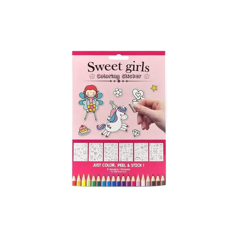 Vyfarbovacie nálepky dievča 6 strán. Skvelé nálepky, ktoré stačí vyfarbiť a nalepiť na obľúbené miesto. Motív pre dievčatá 6 strán s nálepkami Cena je uvedená za 1 balenieVO balenie: 12 balení