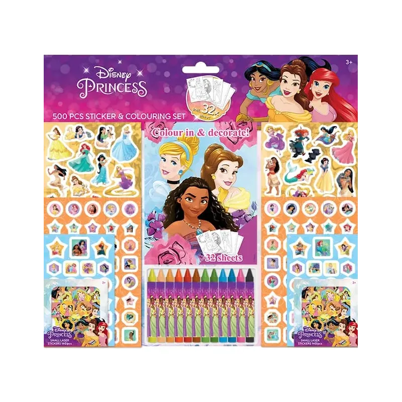 Samolepkový set s maľovankami a voskovkami 500 ks Disney Princez