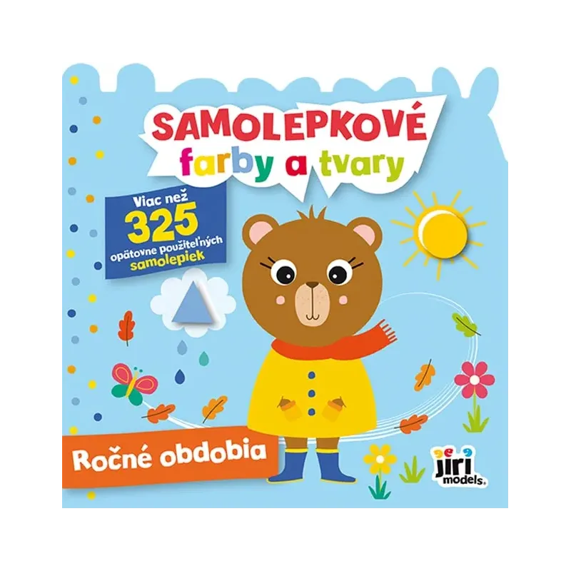 Tvarovaná samolepková knižka malého formátu obsahuje 16 strán a 8 listov opakovane použiteľných samolepiek farebných tvarov, ktoré deti dolepujú do obrázkov podľa príslušnej farby a tvaru.