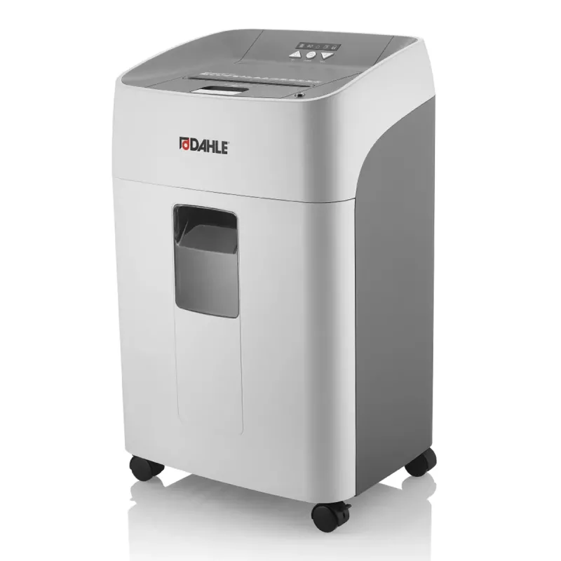 Výkonná a tichá skartovačka s novými rezacími valcami MHP (Matrix-High-Performance) z kompozitnej ocele s garanciou dlhej životnosti. Vhodná do stredne veľkej kancelárie. Praktický automatický štart/stop. Automatická reverzná funkcia na uvoľnenie zaseknutého papiera. Funkcia manuálneho obojsmerného chodu. Automatické zastavenie motora vrátane svetelnej indikácie pri plnom koši alebo jeho vysunutí. Svetelná indikácia preťaženia. Automatické vypnutie po 30 minútach nečinnosti. Komfortné kolieska. Spracuje náhodne vložené zošívacie a kancelárske sponky. Zabezpečenie skartovaných dokumentov zámkom. Automatické vypnutie po30 minútach nečinnosti. Bez nutnosti mazania a údržby. Záruka na rezacie valce 35 rokov + 1 rok navyše s registráciou.