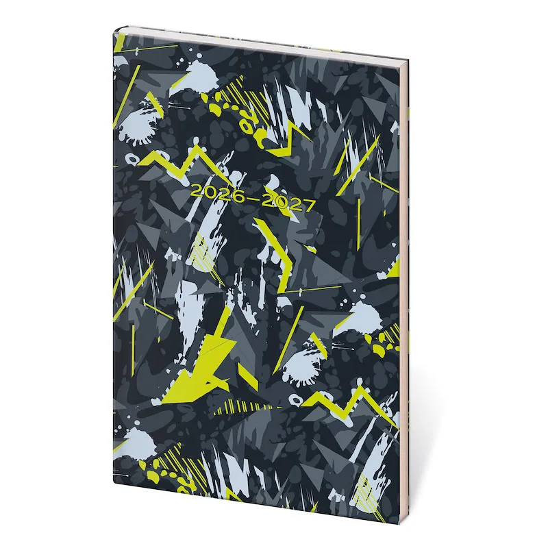 Školský diár A6 na školský rok 2026/2027. Okrem slovenskéhotýždenného kalendária obsahuje aj termíny školských prázdnin aužitočné informácie do školy – matematika, chémia, fyzika, slovenskýjazyk, anglický jazyk.