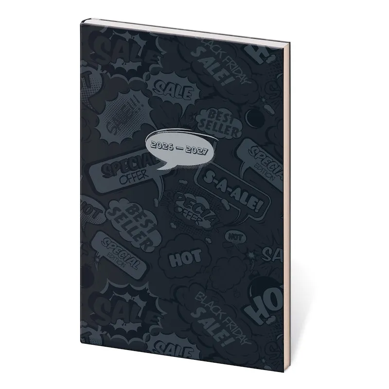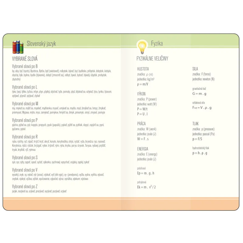 Školský diár A6 na školský rok 2026/2027. Okrem slovenskéhotýždenného kalendária obsahuje aj termíny školských prázdnin aužitočné informácie do školy – matematika, chémia, fyzika, slovenskýjazyk, anglický jazyk.