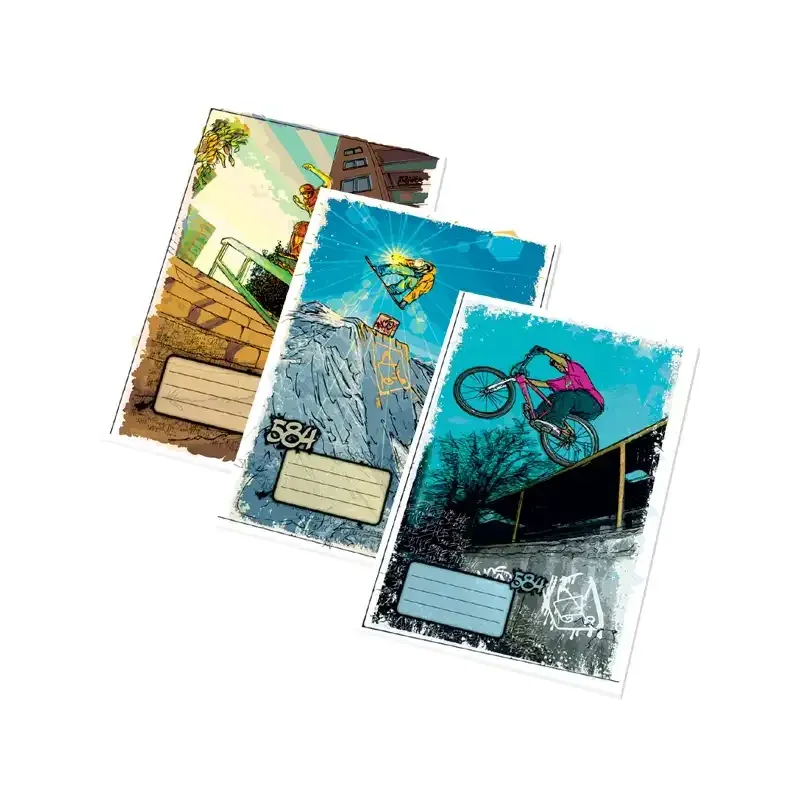 Malý 80 listový zošit 584 s klasickými linajkami (8 mm) z hladkéhobezdrevného papiera, pre základné a stredné školy, balený vo fólii po 5 ks.