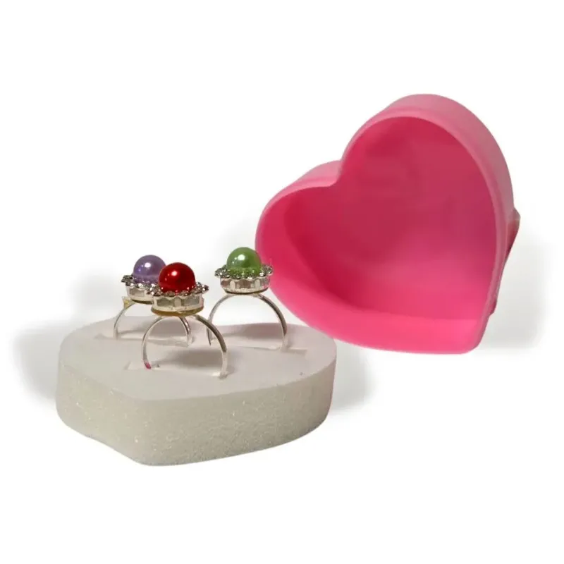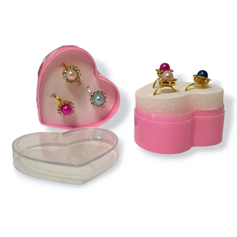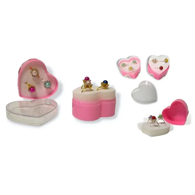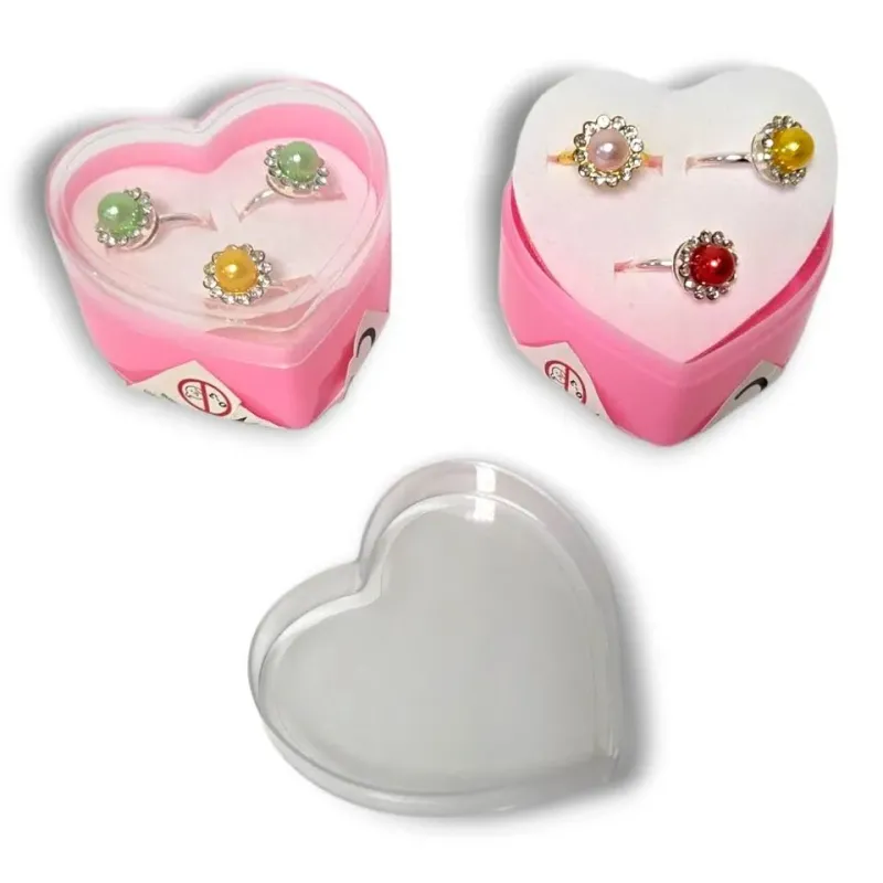 Sada 3 prstienkov s farebnou perlou v srdiečkovom obale pre malé parádnice.