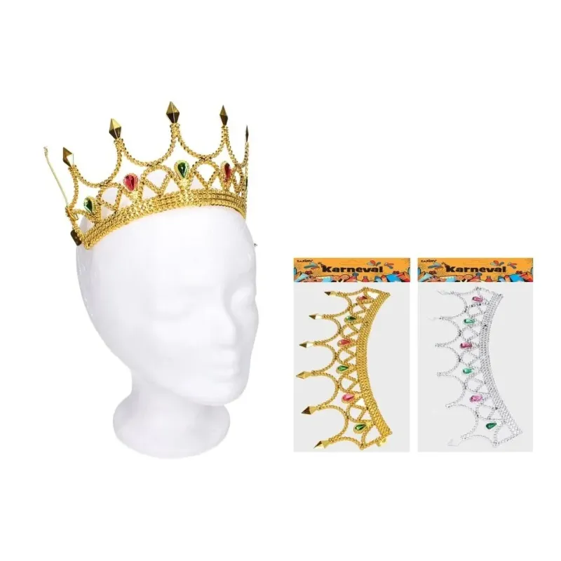Korunka o veľkosti 15 x 8 cm v 2 farebných prevedeniach: zlatá, strieborná.Korunku je možne využiť ako čelenku alebo spojiť do malej korunky.