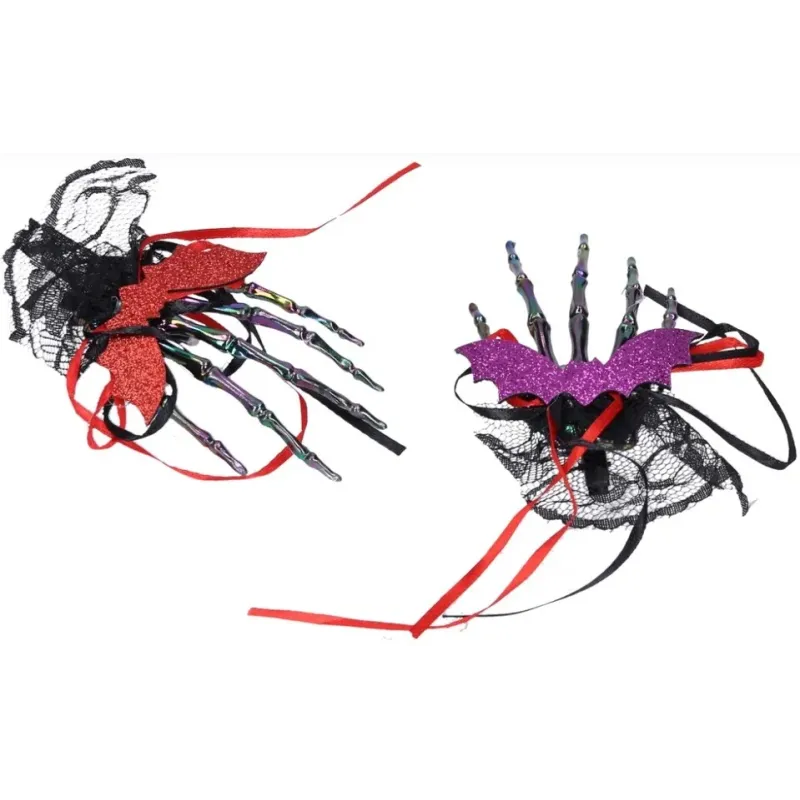 Karnevalový doplnok spona do vlasov v tvare ruky kostry.