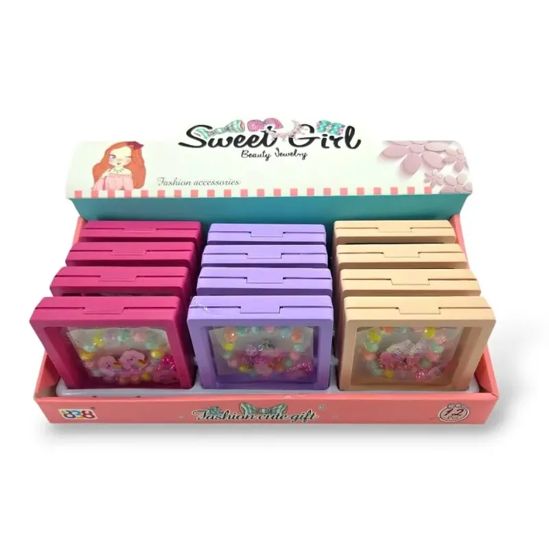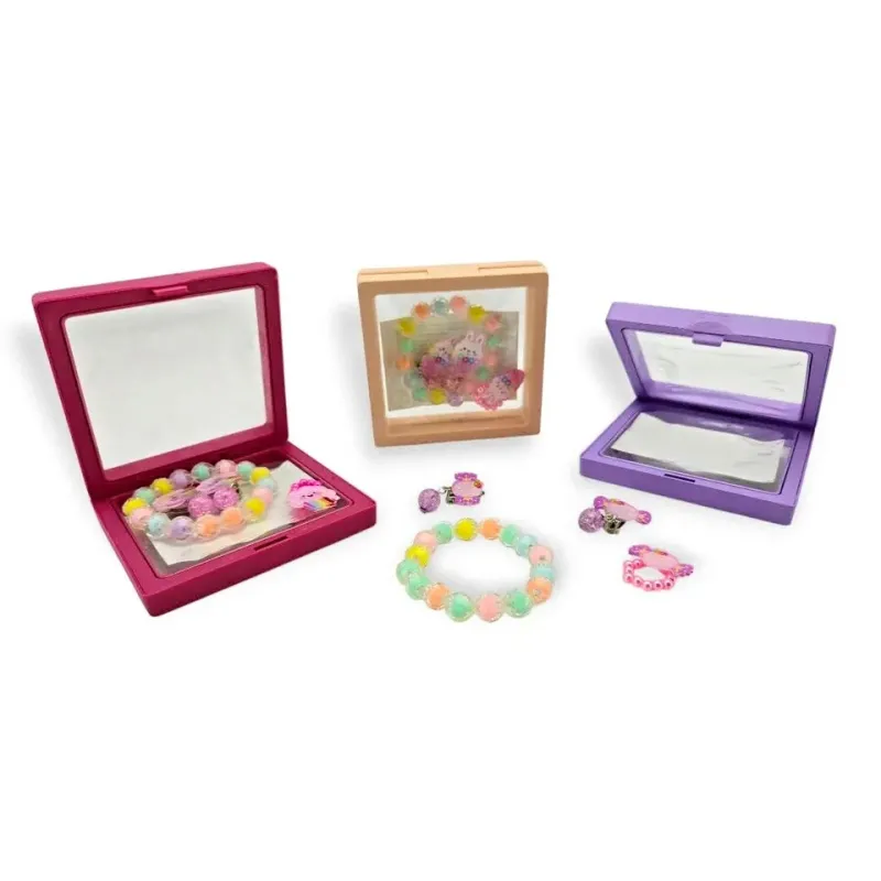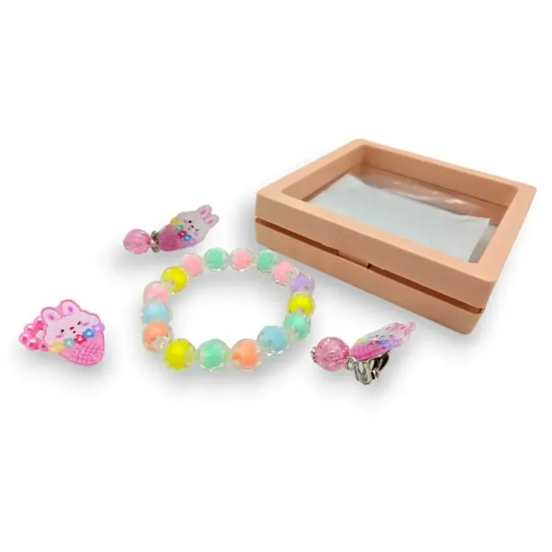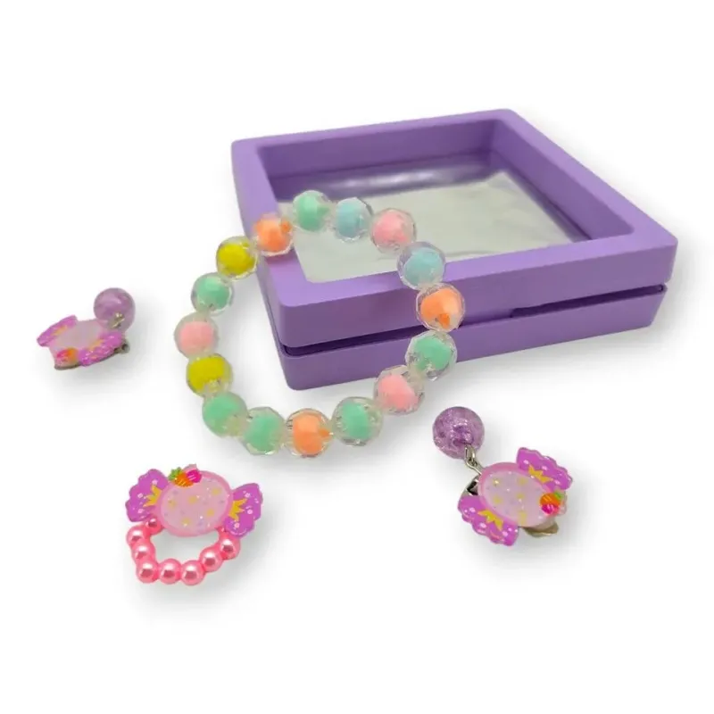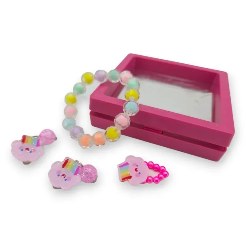 Korálkové šperky s doplnkom Sada náramku, prstienka a klipsnových naušníc v krabičke.