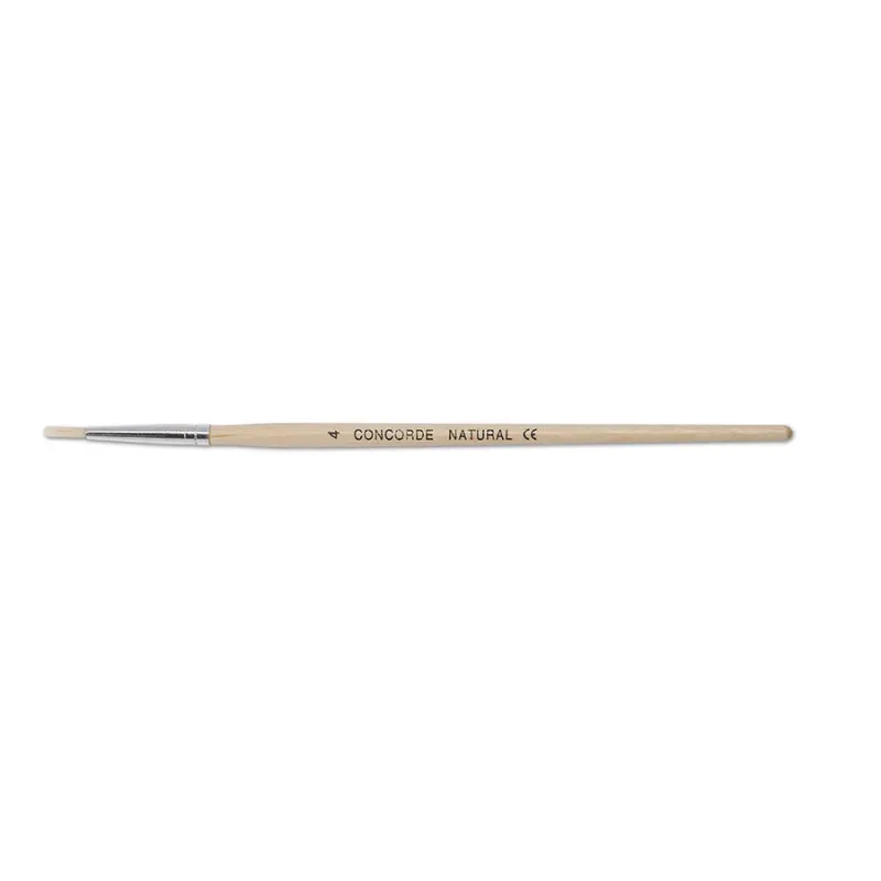 Školský štetec okrúhly, prírodné štetiny, určený k maľovaniu a kresleniu na papier, drevená rukoväť lakovaná bezfarebným lakom. Koniec rukoväte je zaoblený pre vyššiu bezpečnosť. Veľkosť číslo 4. Vlas: prasa.VO balenie: 10 ks