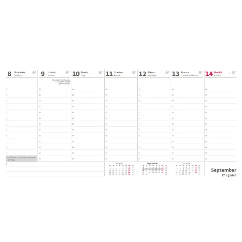 Rozmer: 30x12 cm, hodinové stĺpce na poznámky
