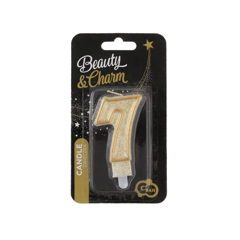 Narodeninová sviečka na tortu glitrovaná s číslom 7. Farba: bielo-zlatá
