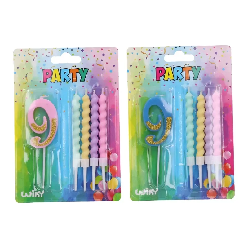 Balenie obsahuje : sviečku číslo: 9 a 4 farebné sviečky2 farby : ružová, modrá