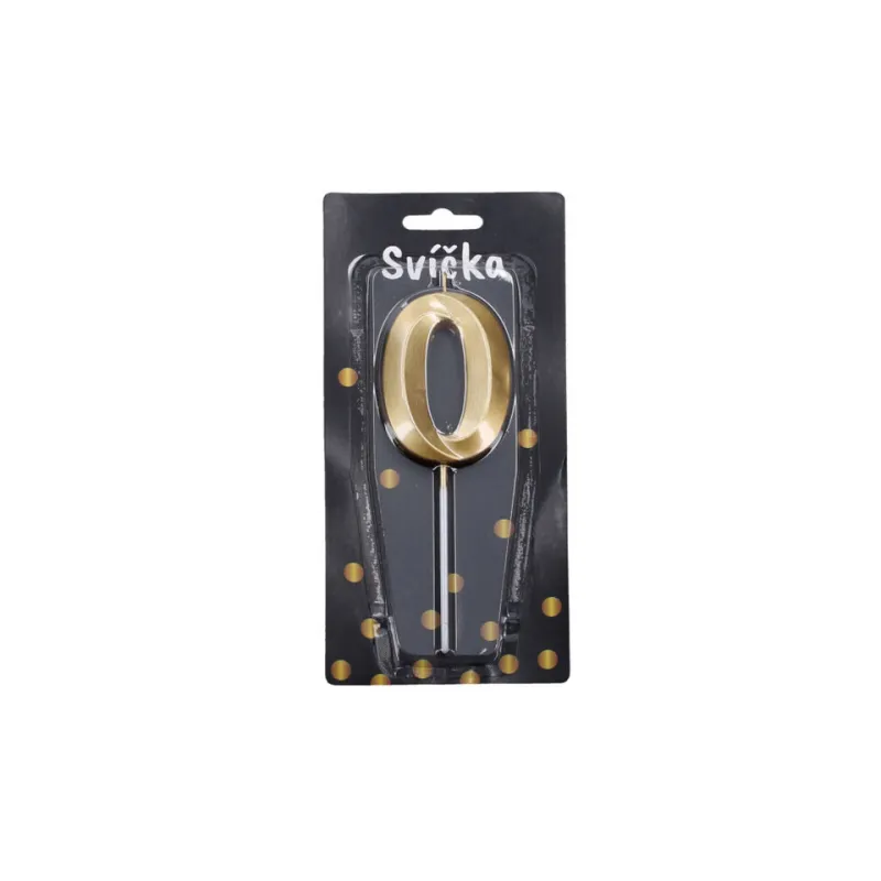 Narodeninová sviečka zlatej farby číslo ,, 0 ", bude dokonalou ozdobou slávnostnej torty.