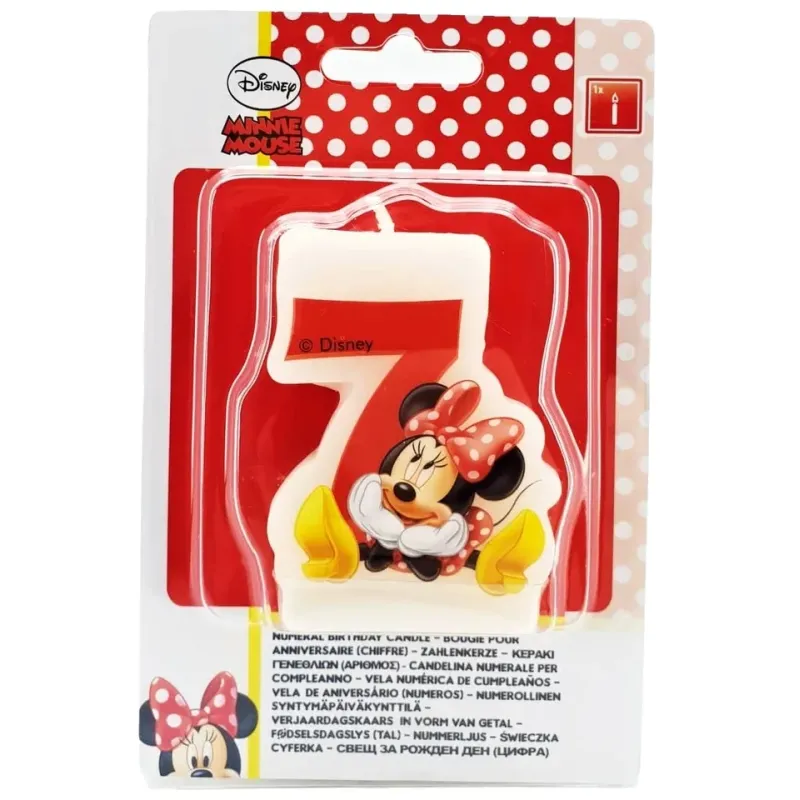 Narodeninová sviečka s číslom 7 a s motívom Disney postavičky Minnie.