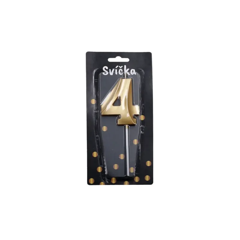 Narodeninová sviečka zlatej farby číslo ,, 4 ", bude dokonalou ozdobou slávnostnej torty.