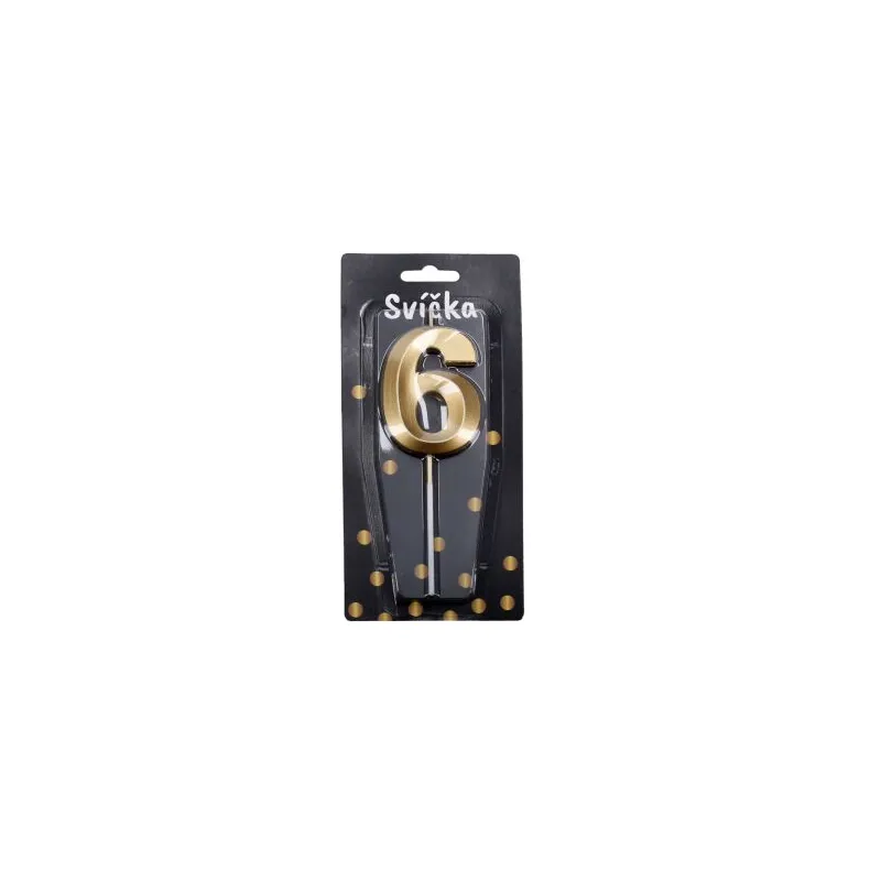 Narodeninová sviečka zlatej farby číslo ,, 6 ", bude dokonalou ozdobou slávnostnej torty.