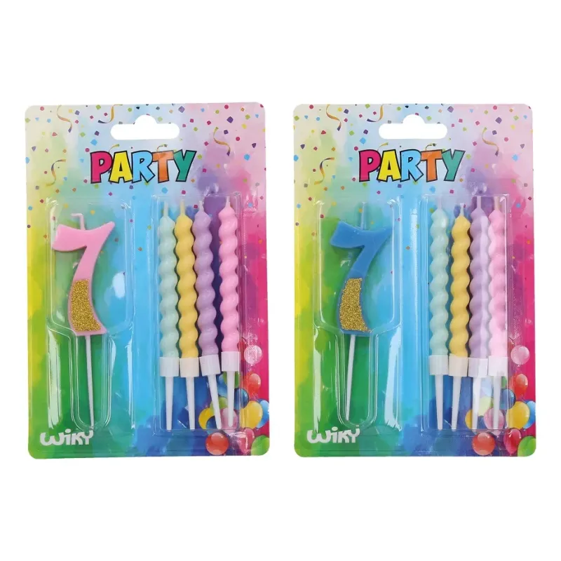 Balenie obsahuje : sviečku číslo: 7 a 4 farebné sviečky2 farby : ružová, modrá