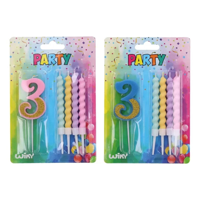 Balenie obsahuje : sviečku číslo: 3 a 4 farebné sviečky2 farby : ružová, modrá